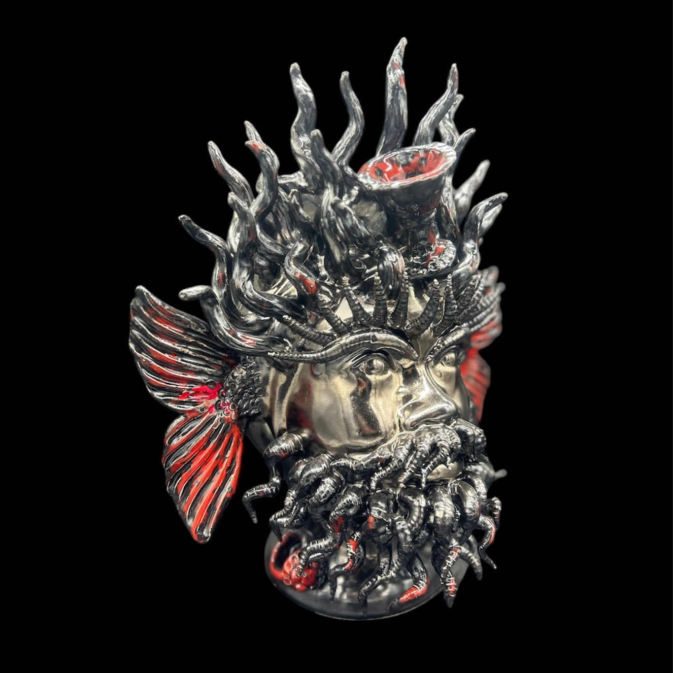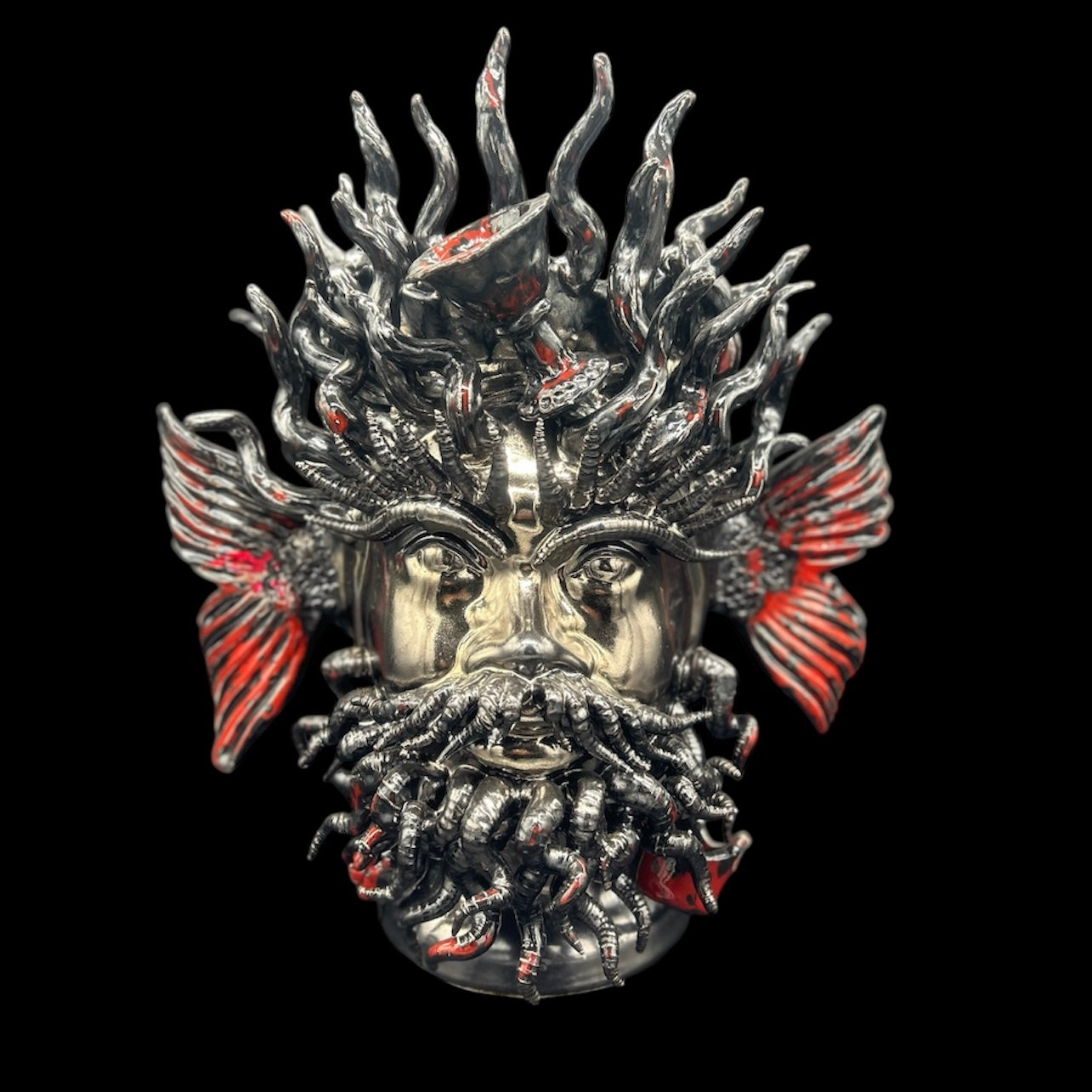 MISURA 38X43 La sua abilità era talmente straordinaria che venne chiamato dal re di Sicilia per risolvere un grave problema: una delle colonne che sorreggevano la Terra, situata sotto il mare, stava cedendo Colapesce si immersi per cercare di trovare la colonna e sostenerla, ma scoprì che la colonna era ormai quasi distrutta. Alla fine, per evitare che la terra crollasse, Colapesce decise di rimanere in fondo al mare a sorreggere la colonna, sacrificando la propria vita per il bene della Sicilia.